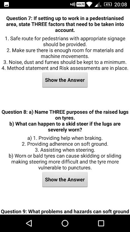 แอพมีทั้งหมด 63 คำตอบสำหรับการทดสอบทฤษฎีปากเปล่า CPCS A23 Skid Steer Loader
