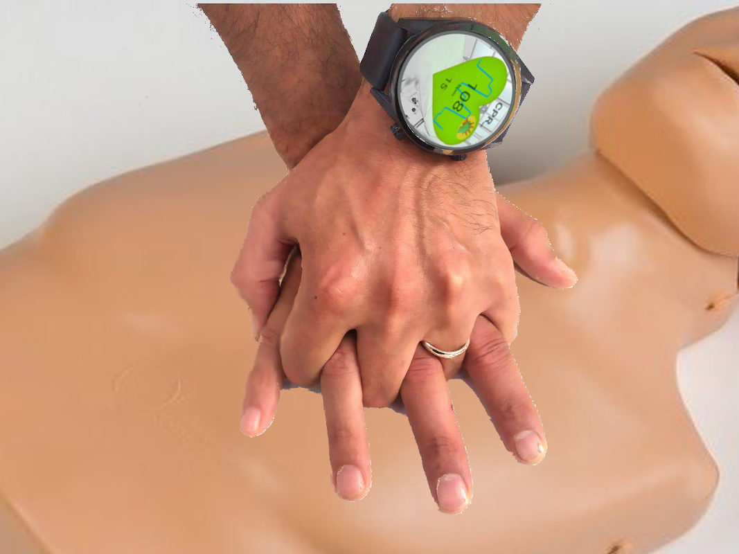 Taking advantage of the gravity sensor it allows to recognize the movement of the arms and to indicate when an effective compression has been accomplished, to count the massages made and to remember when it is time to carry out the ventilation, moreover, touching the heart it is possible to activate the Tap function, useful to practice understanding the right speed, by repeatedly clicking it will show the click speed in bpm.