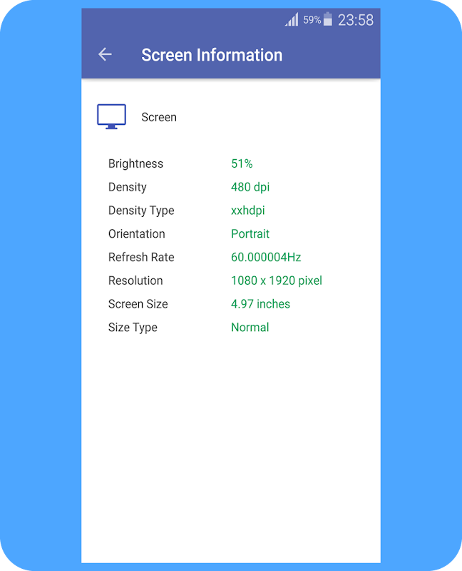 <> Sensors : All the sensors in your device with real-time testing.