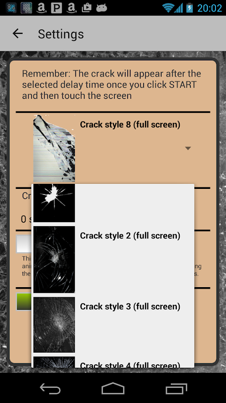 Step 3. When you touch the screen after the selected delay time, the crack will appear.
