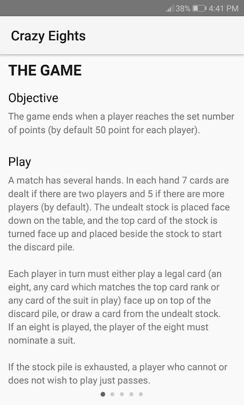 - เล่น Crazy Eights กับ CPU หลายๆ ตัว (2 ถึง 6 ผู้เล่น)