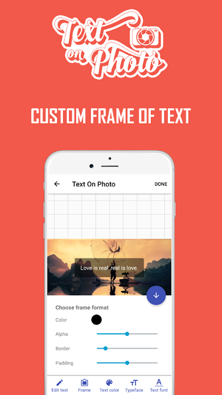 Add text to photos with free custom style. 2000+ quotes and sticker available