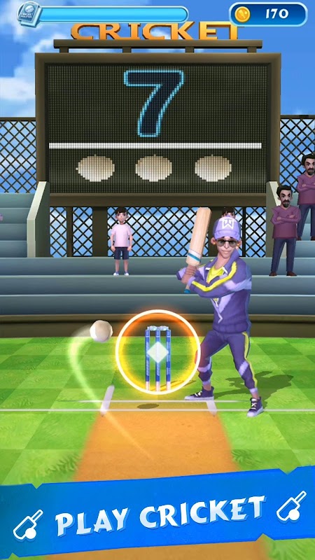 In Cricket Master, you need to hit different types of balls, such as curve balls, circle balls, fast balls or bouncing balls, accurately. In the middle of the screen, there is a white aiming circle to help you hit the ball. You have to hit the ball by tapping the screen immediately when the color of the circle turns to red, otherwise, you will miss the ball. However, remember to dodge the purple balls because the purple balls will blast and block the vision.