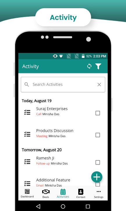 CRM นี้เป็นแอปการจัดการการขายที่สมบูรณ์แบบสำหรับผู้จัดการฝ่ายขายผู้บริหารฝ่ายขายและสมาชิกในทีมขายอื่น ๆ สัมผัสกับพลังที่แท้จริงของการจัดการลูกค้าเป้าหมายและท่อส่งขายในโทรศัพท์มือถือของคุณพร้อมกับติดตามโอกาสในการขายข้อเสนอติดตามผลการทำงานของทีมขาย