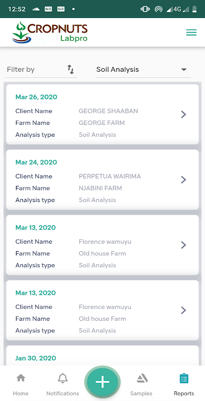 แอพแนะนำนักปฐพีวิทยาผ่านกระบวนการเก็บตัวอย่างการเลือกประเภทของการวิเคราะห์ที่ต้องการการกำหนดราคาการชำระเงินและจัดทำรายงานห้องปฏิบัติการเต็มรูปแบบที่สามารถแชร์กับลูกค้าได้