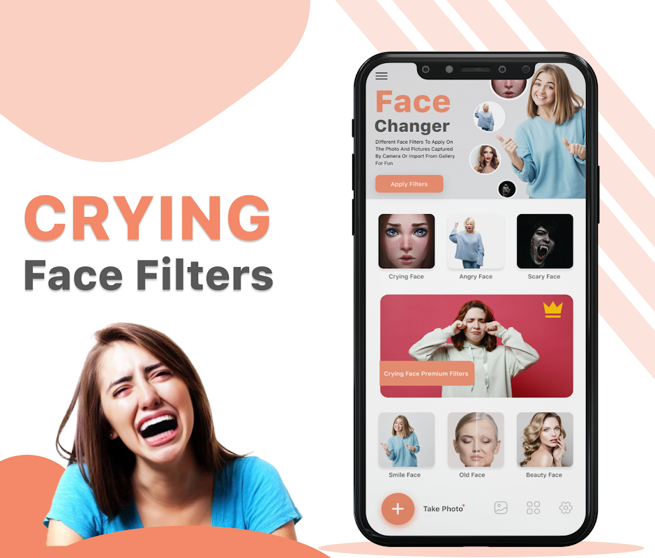 คุณลักษณะการร้องไห้นี้ตรวจจับใบหน้าของคุณและปรับเปลี่ยนเป็นใบหน้าร้องไห้ซึ่งเกือบจะดูเหมือนของจริง แอพนี้มีตัวกรองใบหน้าร้องไห้จำนวนมากและตรวจจับด้วยภาพประกอบอัตโนมัติเพื่อแปลงใบหน้าเป็นใบหน้าร้องไห้ฟรี มันจะสนุกมากกับแฟนสาวและเพื่อน ๆ รอบตัวคุณในการแปลงเวลาที่น่าเบื่อให้กลายเป็นช่วงเวลาพิเศษและตลกด้วยตัวกรองในแกลเลอรี่ฟรี
