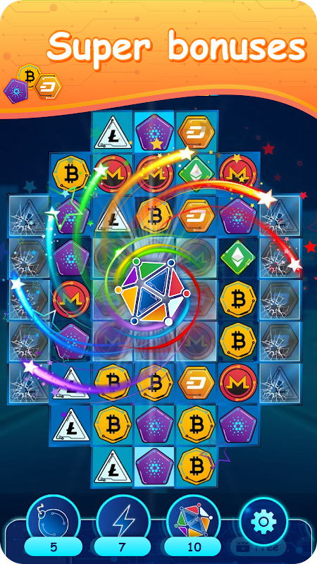 Crypto Gems - สามในแถว (จับคู่ 3 ลูก)