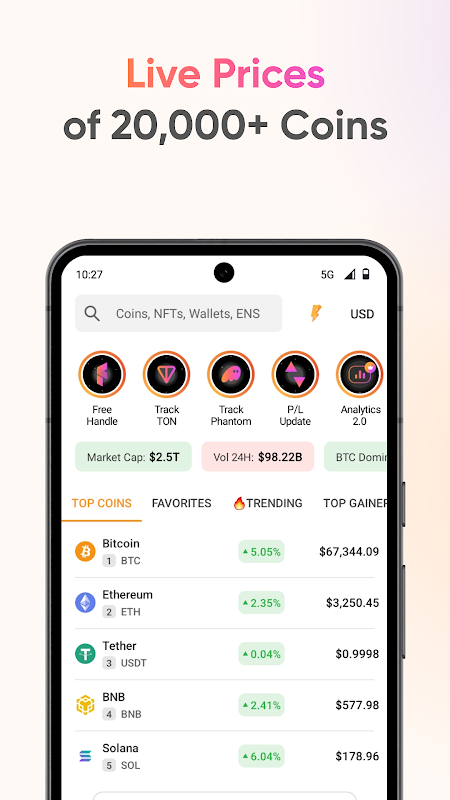 Stay connected on the go with our native widget featuring your portfolio and real-time prices of Bitcoin, Ethereum, Dogecoin, and other cryptocurrencies.