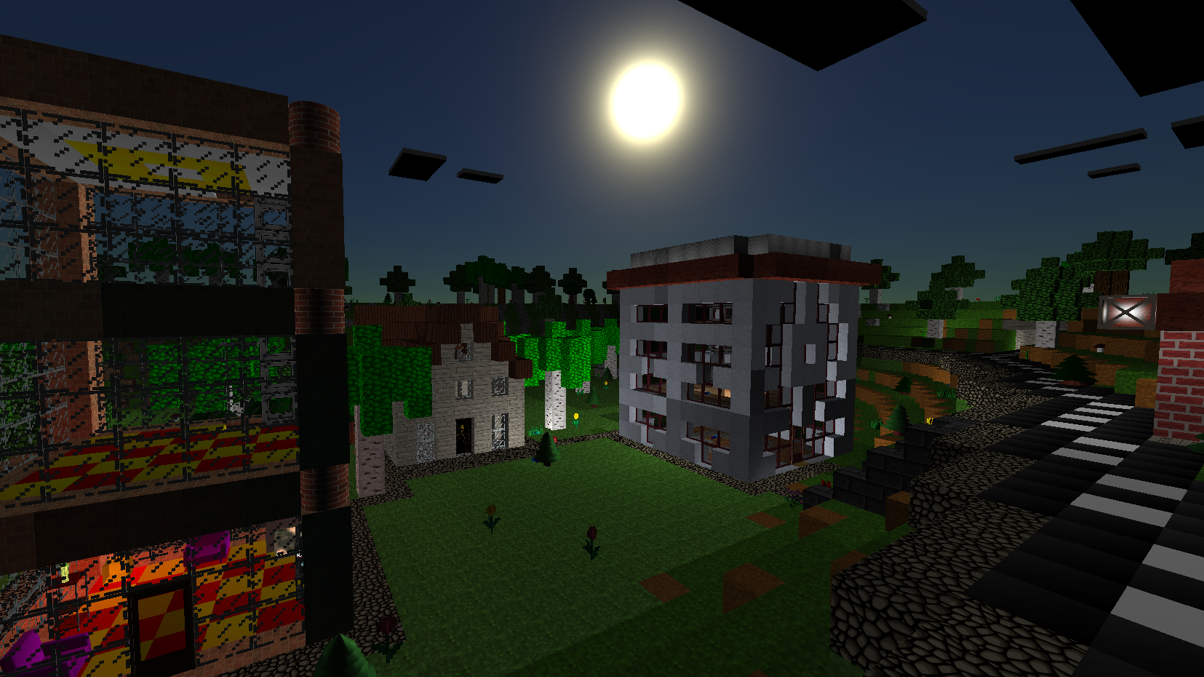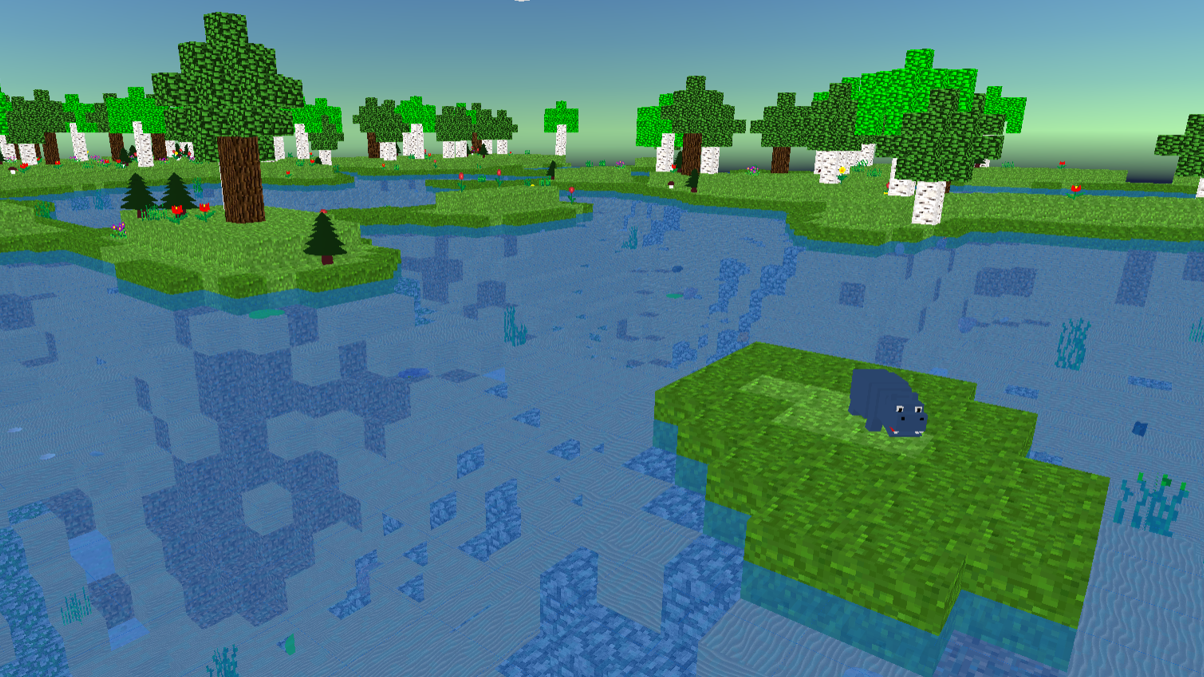 - change game setting and generate different types of 3D blocky world: flatlands or hills and mountains, landscape with flying islands or sea with isle, water world or world full of lava;