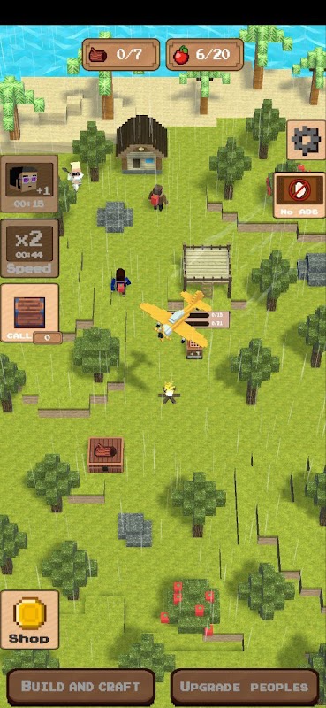 Сatch fish, look for apples and other food on the island to survive and upgrade your characters. Build a house and store food in it.