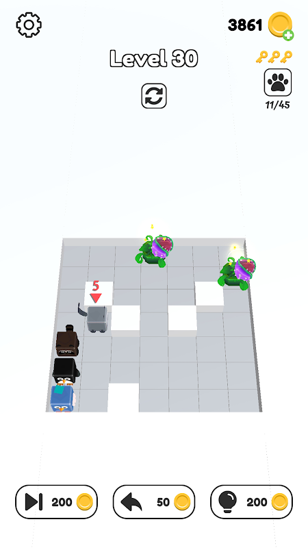 It seems easy but harder than you think. The path for animals' moving is not obvious, and the plant of big chomper will swallow the animal in front of it!