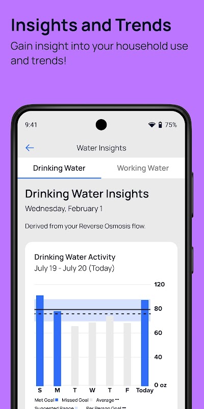 •ตรวจสอบและติดตามการใช้น้ำรายวันและรายสัปดาห์ของคุณ