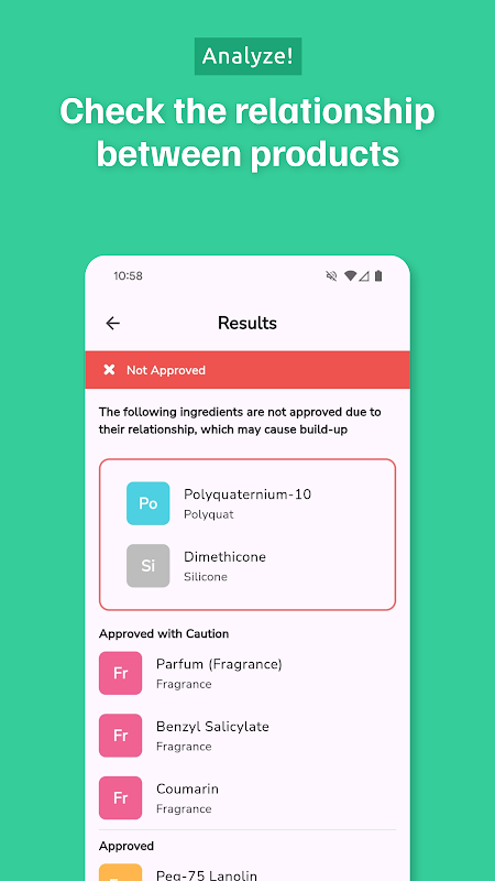 ความสามารถในการจดจำรูปภาพของแอปทำให้คุณสามารถสแกนส่วนผสมจากรูปภาพฉลากผลิตภัณฑ์ได้ ทำให้ง่ายต่อการวิเคราะห์ผลิตภัณฑ์แม้ว่าคุณจะไม่ได้อยู่ในร้านก็ตาม