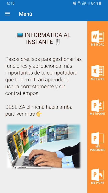 แอป "Computer Course" มีคู่มือภาษาสเปนฉบับสมบูรณ์ ซึ่งจะสอนวิธีการทำงานในเครื่องมือต่างๆ ที่คุณสามารถหาได้ในคอมพิวเตอร์เป็นขั้นเป็นตอน ซึ่งมีฟังก์ชันต่างๆ ทุกวันนี้ การเรียนรู้องค์ประกอบพื้นฐานในการใช้คอมพิวเตอร์เป็นสิ่งสำคัญมาก เช่นเดียวกับความรู้ที่จำเป็นในการท่องอินเทอร์เน็ต การใช้อีเมล การใช้โซเชียลเน็ตเวิร์ก ฯลฯ