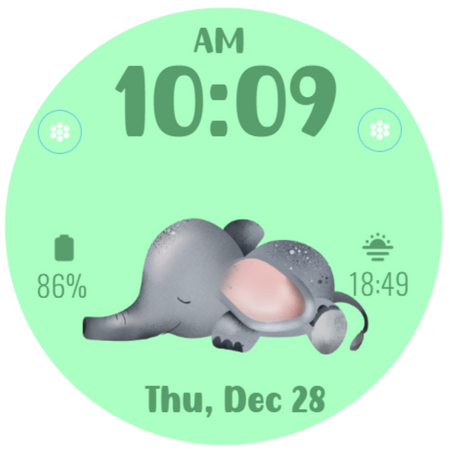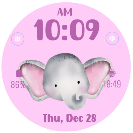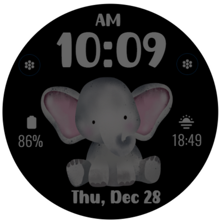 หน้าปัดธีมช้างน่ารักสำหรับ Wear OS