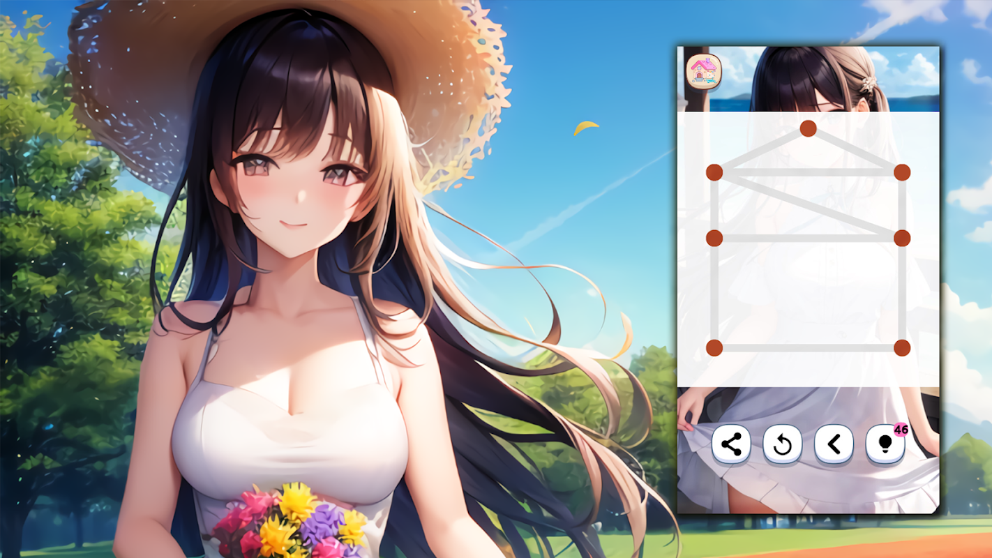 เชื่อมต่อจุดด้วยเส้นเพื่อรับรูปถ่ายของหญิงสาว