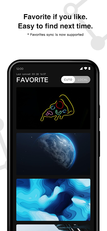 Cuto รองรับการซิงค์บนคลาวด์ของรายการโปรดของคุณ เมื่อคุณเห็นวอลเปเปอร์ที่คุณชอบ เพียงบันทึกลงในโฟลเดอร์รายการโปรดของคุณ ครั้งต่อไปคุณสามารถค้นหาในรายการโปรดได้หากต้องการนำกลับมา