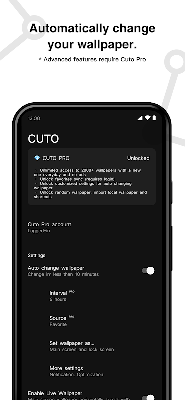 - นำเข้าวอลเปเปอร์ในเครื่อง: ด้วยคุณสมบัติ "เปลี่ยนวอลเปเปอร์อัตโนมัติ" Cuto จะกลายเป็นยูทิลิตี้เปลี่ยนวอลเปเปอร์ประจำวันของคุณ