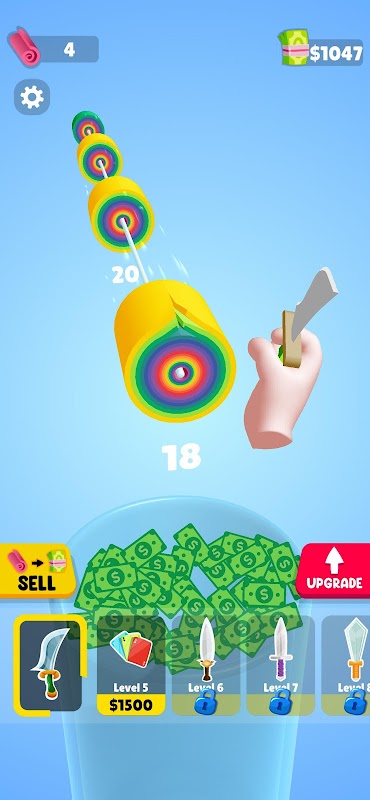 คลิกเพื่อยิงมีดของคุณ ตัดม้วนเป็นชั้นๆ ขายชิ้นส่วน รับเงิน อัปเกรดมีดของคุณ เริ่มใหม่แล้วใหม่อีก