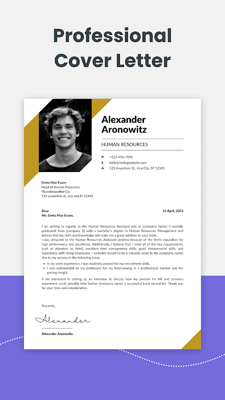 แอพนี้ช่วยคุณในการสร้าง CV ของคุณต่ออย่างมีประสิทธิภาพมากที่สุด แอป Resume Example จะแนะนำวิธีการเขียนในทุกส่วนของประวัติย่อของคุณ เช่น ระยะเวลาที่ควรจะเป็น เนื้อหาใดที่ควรรวมไว้ และอื่นๆ