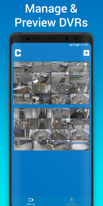 เพิ่มและบันทึก DVR ได้อย่างง่ายดายหลายรายการเพื่อให้จำได้อย่างรวดเร็วในภายหลัง เมื่อบันทึกแล้วภาพตัวอย่างขนาดย่อของ DVR จะปรากฏขึ้นทำให้เป็นเรื่องง่ายในการค้นหา DVR ที่คุณเลือก