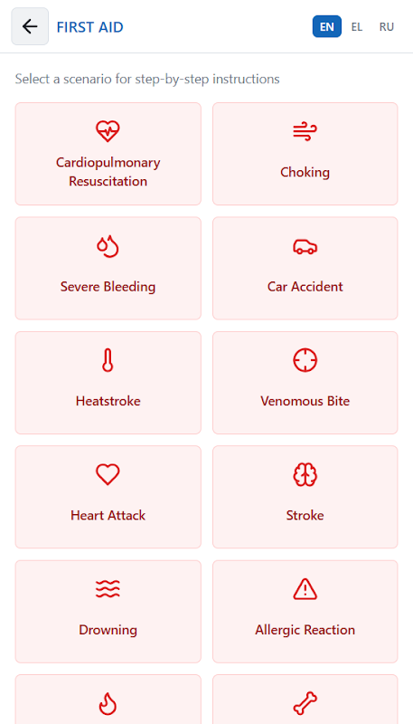 The application provides informational guidance only and does not replace professional emergency services.