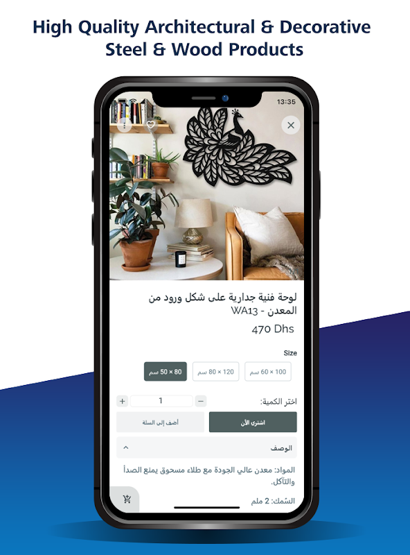 แอปพลิเคชั่นนี้อนุญาตให้สั่งซื้อและซื้อผลิตภัณฑ์ตกแต่งผนัง ผลิตภัณฑ์ศิลปะอิสลามบนผนัง และนาฬิกาแขวน