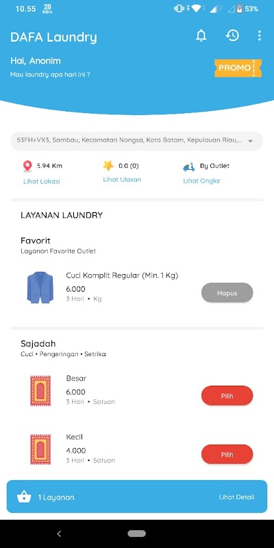 ขณะนี้มีแอปพลิเคชันที่รวมเข้ากับ DAFA Laundry ที่โรงเรียนประจำอิสลาม Darul Falah - Batam โดยเฉพาะ