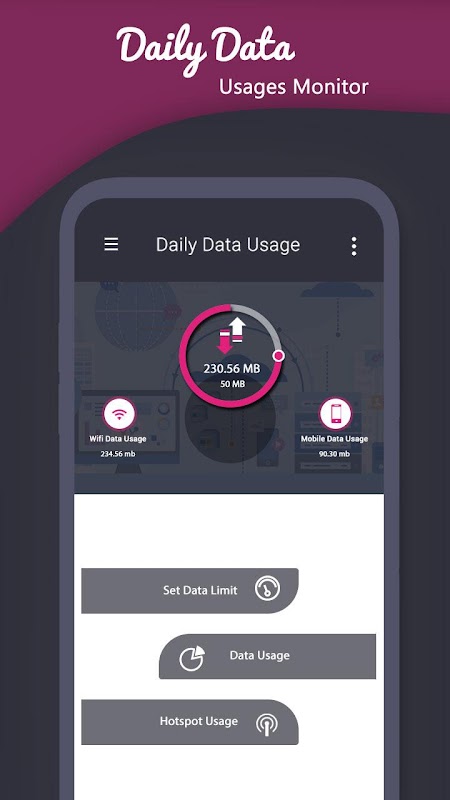 Data Usage Monitor เป็นแอพที่ใช้งานง่ายสำหรับคุณในการจัดการการใช้ข้อมูลของคุณ การตรวจสอบการใช้ข้อมูลช่วยให้คุณสามารถวัดปริมาณข้อมูลประจำวันของคุณได้อย่างแม่นยำและวิเคราะห์ข้อมูลด้วยวิธีที่เข้าใจง่าย นอกจากนี้ยังแสดงคำเตือนเมื่อคุณถึงขีด จำกัด ปริมาณการใช้ข้อมูลซึ่งช่วยปกป้องคุณจากการใช้ข้อมูลมากเกินไป