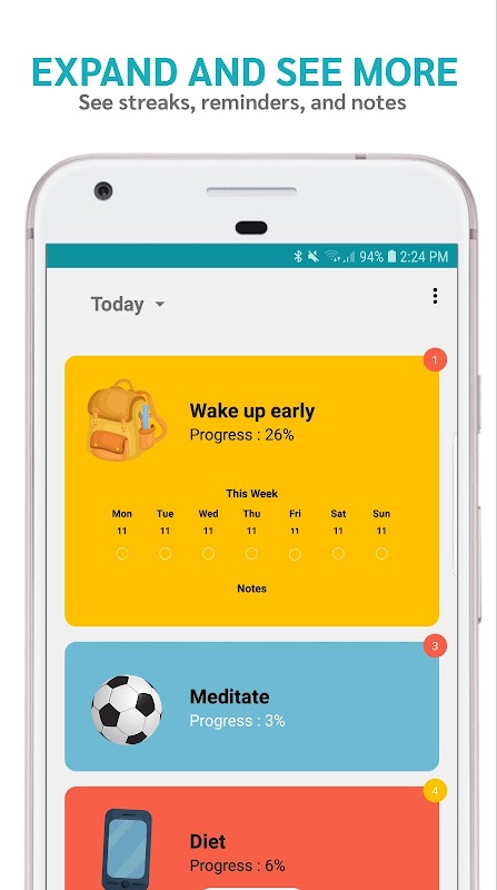 การวางแผนชีวิตและการวางแผนเป้าหมายเริ่มต้นด้วยการจัดการนิสัยของคุณ คุณสามารถบรรลุเป้าหมายและมีชีวิตที่ประสบความสำเร็จหากคุณสร้างนิสัยที่แข็งแรง นิสัยที่ดีต่อสุขภาพช่วยให้คุณสามารถจัดการเวลาและเอาชนะการผัดวันประกันพรุ่ง มันทำให้คุณใช้ชีวิตที่มีสุขภาพดีขึ้นได้รับมติปีใหม่และในท้ายที่สุดบรรลุเป้าหมายในชีวิตของคุณ การสร้างนิสัยที่ดีนั้นไม่ใช่เรื่องง่ายเพราะเราต้องคุ้นเคยกับสิ่งใหม่ ๆ ที่ต้องทำและบ่อยครั้งที่นิสัยเหล่านั้นยาก (ตัวอย่างเช่น: ออกกำลังกายทุกวัน) เราต้องการแอปจัดกิจกรรมเพื่อติดตามเป้าหมาย ดังนั้นก่อนที่คุณจะวางแผนชีวิตและวางแผนเป้าหมายรับ Daily Habit Tracker ก่อน!