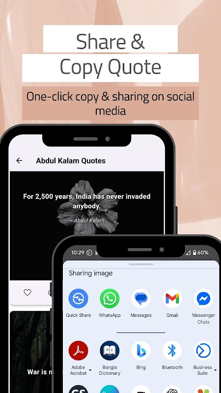 แชร์คำคมกับเพื่อนและครอบครัวผ่าน WhatsApp, Instagram, Facebook หรือแพลตฟอร์มโซเชียลมีเดียใดๆ เพียงแค่แตะ