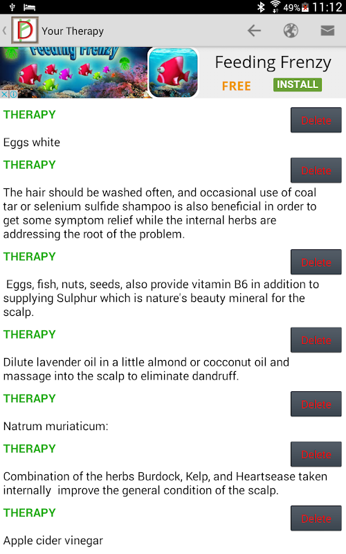 สุดท้ายแตะที่บำบัดของคุณ คุณจะเห็นรายการของอาการ (สีส้ม) ผสมกับรายการของการเยียวยา (สีเขียว) ที่คุณได้เลือก นำมารวมกันอาการและการเยียวยาในรูปแบบการบำบัดของคุณ ตอนนี้สิ่งที่คุณต้องทำคือการได้รับการเยียวยาและเริ่มต้นกระบวนการของการปรับปรุงที่สุดของสุขภาพของคุณ