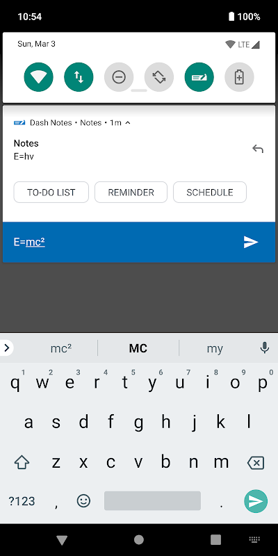 Dash notes utilizes stock android quick settings tiles and notification services to provide fast, easy note-taking experience to users. It also gives you a fresh look in UI. Some material design 2 styles have been implemented, such as snackbar and the bottom sheet view.