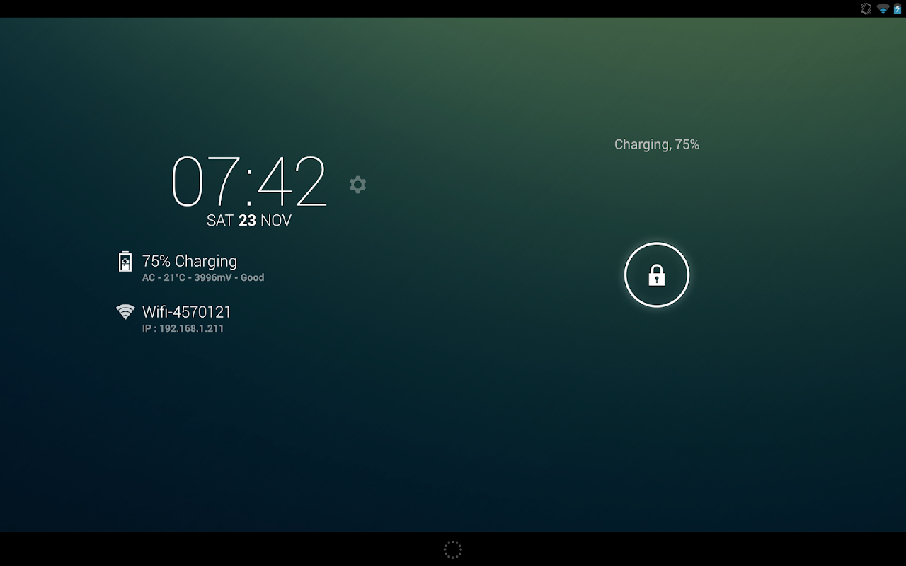 • Displays charging state (Discharging, Charging, Not Charging, Fully charged)