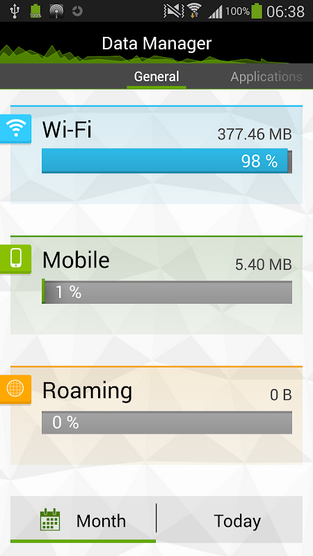 Data Manager is a modern app that will help you monitor network traffic. With Data Manager you will know what your daily data usage is, what apps consume the most data and other useful information!