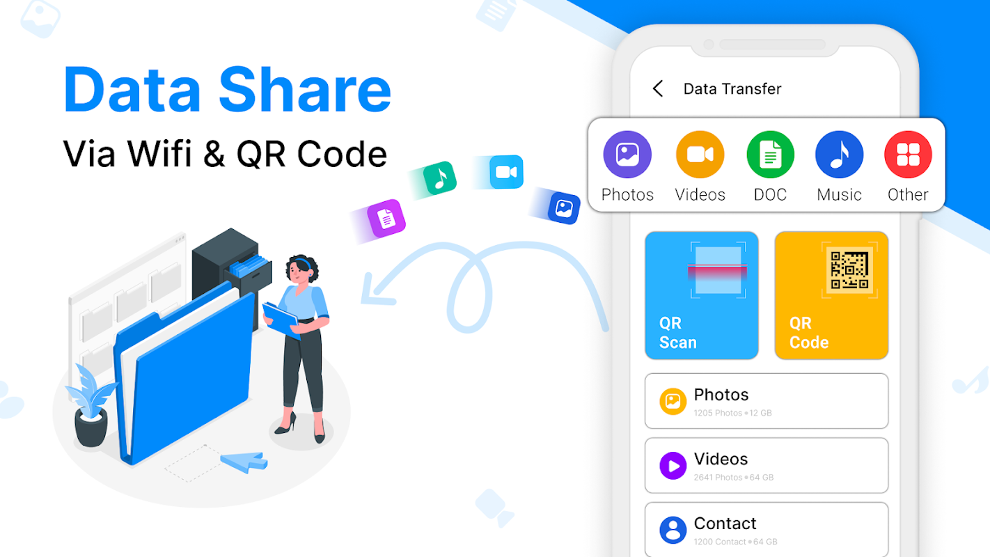 คุณสามารถถ่ายโอนไฟล์ทั้งหมดอย่างชาญฉลาดโดยเลือกไฟล์เหล่านั้นและแชร์กับเพื่อนและครอบครัวของคุณอย่างชาญฉลาด การถ่ายโอนข้อมูลของฉันอย่างง่ายดายด้วยความช่วยเหลือของการแบ่งปันสวิตช์อัจฉริยะนี้สามารถทำได้อย่างรวดเร็ว โคลนโทรศัพท์อัจฉริยะไม่ล่าช้าและแบ่งปันเนื้อหากับใครก็ได้ที่คุณต้องการในเวลาอันรวดเร็ว ตอนนี้คุณสามารถถ่ายโอนและแชร์ผู้ติดต่อจากโทรศัพท์ของคุณด้วยสวิตช์อัจฉริยะถ่ายโอนแอปข้อมูลทั้งหมด