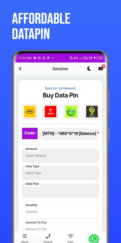 **อินเทอร์เน็ตราคาไม่แพง**: บอกลาการสมัครรับข้อมูลที่มีราคาแพงสำหรับ Android คอมพิวเตอร์ และอุปกรณ์อื่นๆ ของคุณ Data2me เสนอแผนข้อมูลราคาไม่แพงอย่างเหลือเชื่อบนเครือข่ายชั้นนำ เช่น MTN, 9MOBILE, GLO และ AIRTEL พร้อมส่วนลดตั้งแต่ 10-50% จากอัตราปกติ แผนเหล่านี้มาพร้อมกับความถูกต้องขั้นต่ำ 30 วัน การจัดส่งทันที และบริการตลอด 24 ชั่วโมง ยกเว้นในสถานการณ์ข้อผิดพลาดของเครือข่ายซึ่งเกิดขึ้นไม่บ่อยนัก