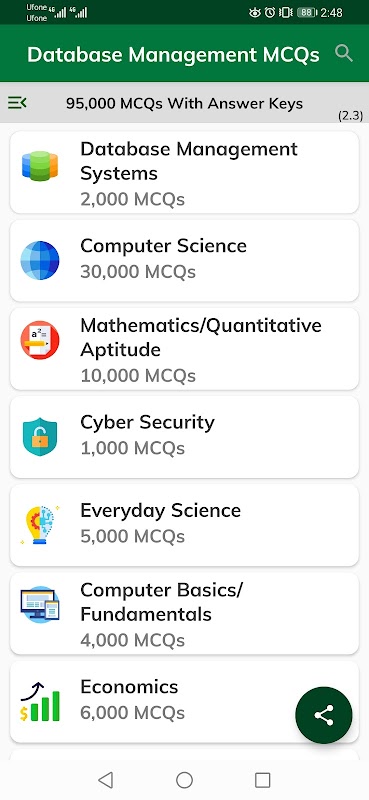 "ฐานข้อมูล MCQs Bank" - แอปพลิเคชัน Android ที่มีคำถามปรนัยมากกว่า 95,000 หัวข้อและหัวข้อที่ชาญฉลาด ธนาคารของคำถามแบบเลือกตอบ (MCQs) นี้มุ่งเน้นไปที่ประเด็นหลักทั้งหมดของระบบการจัดการฐานข้อมูล วิศวกรรมซอฟต์แวร์/คอมพิวเตอร์ วิทยาการคอมพิวเตอร์ และเทคโนโลยีสารสนเทศ หัวข้อเหล่านี้ได้รับการคัดเลือกจากหนังสืออ้างอิงที่ดีที่สุดและน่าเชื่อถือที่สุดเกี่ยวกับระบบการจัดการฐานข้อมูลและวิศวกรรมซอฟต์แวร์ หนึ่งควรใช้เวลา 1 ชั่วโมงต่อวันเป็นเวลา 5-6 เดือนในการเรียนรู้และดูดซึมหัวข้อหลักของระบบการจัดการฐานข้อมูลและวิศวกรรมซอฟต์แวร์อย่างครอบคลุม วิธีการเรียนรู้อย่างเป็นระบบนี้จะเตรียมใครก็ตามได้อย่างง่ายดายต่อระบบการจัดการฐานข้อมูลและการสัมภาษณ์วิศวกรรมซอฟต์แวร์ การทดสอบออนไลน์ การสอบ และการรับรอง นี่คือประโยชน์ของคำถามและคำตอบของระบบการจัดการฐานข้อมูลที่แก้ไขอย่างสมบูรณ์ของเรา: