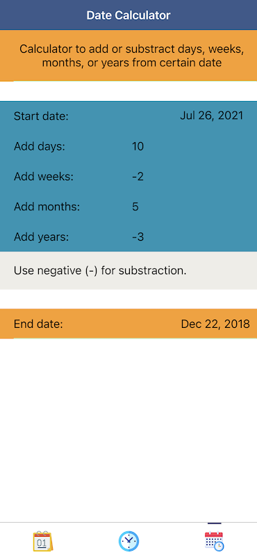 🔸เครื่องคำนวณวันที่ซึ่งช่วยให้คุณสามารถเพิ่มหรือลบวันสัปดาห์เดือนหรือปีในบางวันได้