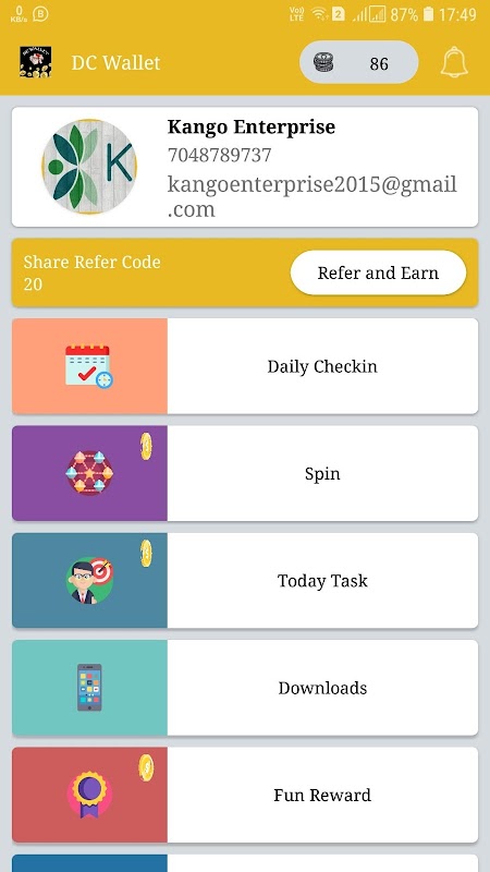 Earn Coin by completing simple tasks inside the app, There various task by which user can earn coin.. Royal Spin is pays better and faster than other reward apps