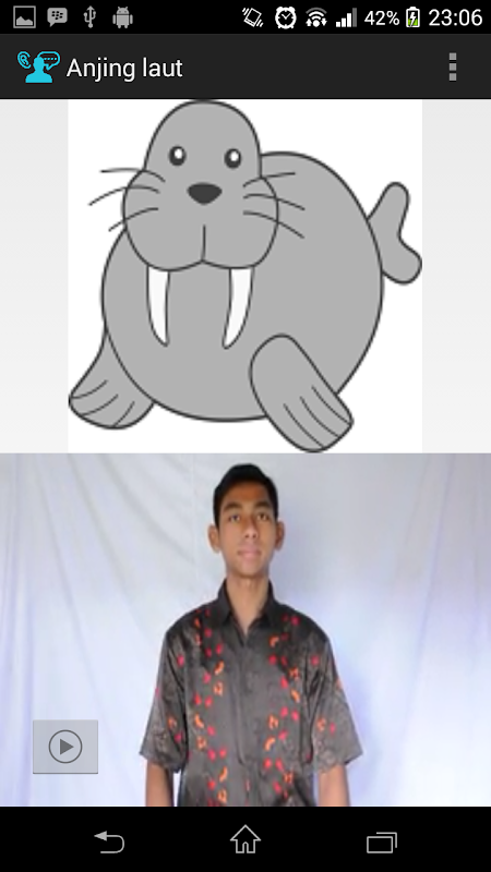 - Berisi video cara pengucapan dan bahasa isyarat pengejaan huruf tiap kata