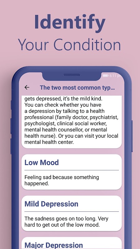 การทดสอบอาการซึมเศร้าถูกออกแบบมาเพื่อช่วยให้คุณประเมินความรุนแรงของภาวะซึมเศร้าของคุณด้วยคำถามง่าย ๆ เพียงเก้าข้อ แอพนี้ใช้แบบสอบถามสุขภาพของผู้ป่วย (PHQ-9) ซึ่งเป็นแบบสอบถามที่ใช้ในการทดสอบด้วยตนเอง อาการซึมเศร้าทางคลินิกเป็นความผิดปกติทางอารมณ์ที่ความรู้สึกของความเศร้าความสูญเสียความโกรธหรือความขุ่นมัวรบกวนชีวิตประจำวันเป็นเวลาหลายสัปดาห์หรือนานกว่านั้น อาการซึมเศร้าในคลินิกโดยทั่วไปตอบสนองเชิงบวกต่อการรักษาดังนั้นจึงเป็นสิ่งสำคัญที่จะต้องรักษาหากคุณกังวลเกี่ยวกับสุขภาพจิตของคุณ