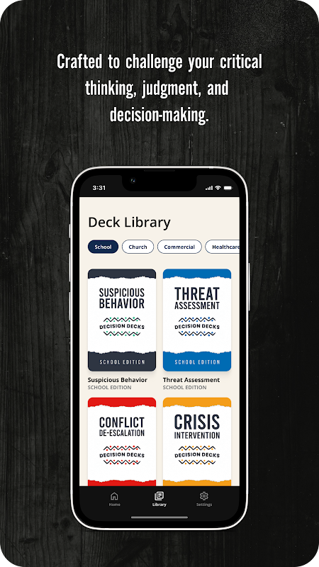 ขอแนะนำ Decision Decks เครื่องจำลองขนาดพกพาของคุณเพื่อความปลอดภัยและสถานการณ์การรักษาความปลอดภัย สร้างขึ้นเพื่อท้าทายความคิดเชิงวิพากษ์ การตัดสิน และการตัดสินใจของคุณ ชุดเหล่านี้จะนำคุณเข้าสู่ใจกลางของสถานการณ์ในชีวิตจริง ตั้งแต่ความขัดแย้งและวิกฤตไปจนถึงเหตุการณ์ที่น่าสงสัยและเหตุฉุกเฉินที่คุกคามถึงชีวิต พวกเขาตั้งคำถามสำคัญ คุณจะทำอย่างไร? และคุณจะตอบสนองอย่างไร?