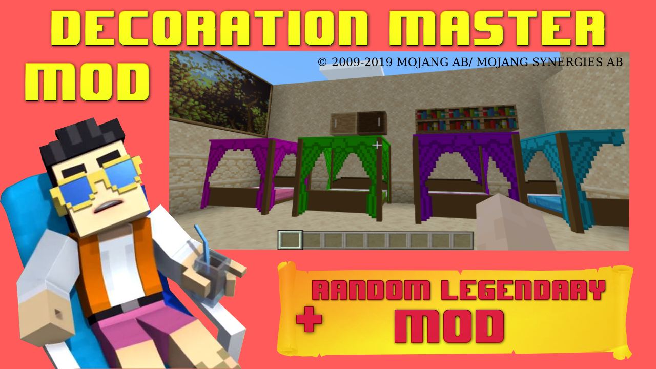Decoration master mod will amaze you and your home. A huge number of beds of different colors, there are also various bedside tables. There is also a huge selection of equipment. There is a special opportunity to draw pictures on the walls, including very beautiful paintings, socks and so on. The uniqueness and variety of furniture are huge, the color scheme is amazing. If you have a huge house and the furniture in it is standard and you will be happy to change it to a more modern one then this will suit you perfectly. Get ready to receive a special random legendary reward - mod!