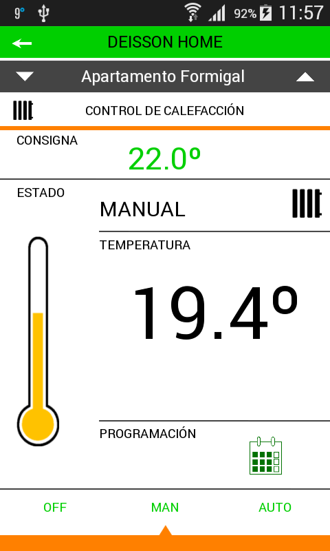 Anywhere-Anytime es nuestro eslogan. Desde cualquier lugar y en cualquier momento podrá encender o apagar la calefacción e incluso programarla en diferentes franjas horarias y a distintas temperaturas, según sus hábitos. Además podrá conectar la alarma de intrusión si ha olvidado activarla o apagar las luces de su hogar. Somos especialistas en el control del hogar y sabemos que las máquinas no sustituyen a las personas. Deisson nunca encenderá la calefacción si usted no se lo ha ordenado.