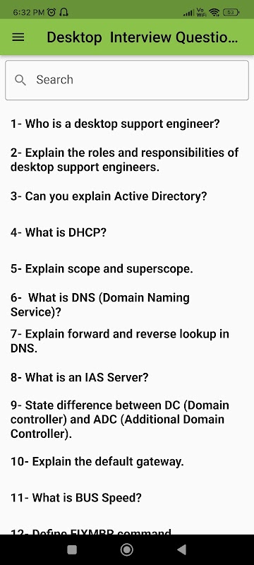 การเตรียมตัวสำหรับการสัมภาษณ์ทางเทคนิค? มองไม่เพิ่มเติม! Desktop Support Engineering พร้อมช่วยให้คุณเป็นเลิศในการสัมภาษณ์ทางเทคนิค ไม่ว่าคุณจะเพิ่งเริ่มต้นอาชีพใหม่หรือมืออาชีพที่มีประสบการณ์ที่ต้องการเพิ่มระดับ แอปของเรามีคอลเล็กชันคำถามและคำตอบในการสัมภาษณ์ที่ครอบคลุมเพื่อปรับปรุงการเตรียมตัวและเพิ่มโอกาสในการประสบความสำเร็จ