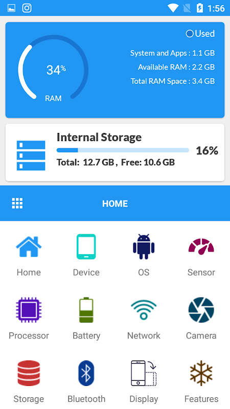 Device Info is a simple and powerful Android application that gives you complete information about your mobile device with advanced user interfaces. Device Info includes information about CPU, RAM, OS, Sensors, Storage, Battery, SIM, Bluetooth, Installed Apps, System Apps, Display, Camera, Thermal, etc.