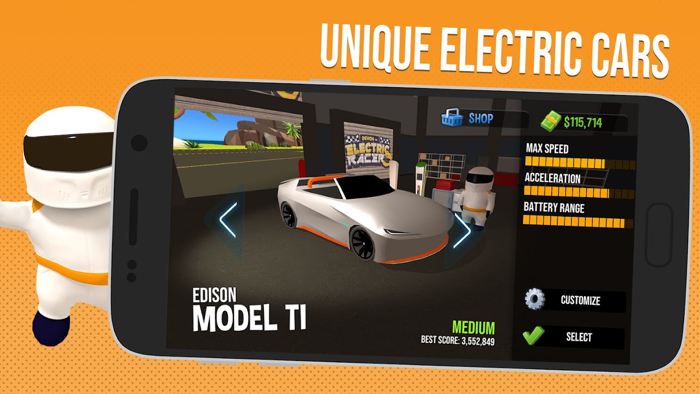 เฮ้! กระโดดขึ้นรถยนต์ไฟฟ้าและแข่งขันกับเดวอนในท้องถนนในเกมแข่งรถอาร์เคดสุดเร้าใจนี้ อนาคตมาถึงแล้ว