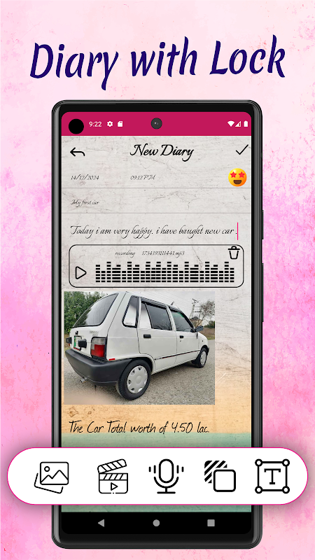 Diary with Lock: Diary Journal เป็นแอปที่สมบูรณ์แบบสำหรับคุณในการบันทึกการแสดงออกและอารมณ์ของคุณ มันเป็นไดอารี่พร้อมตัวล็อคและตัวติดตามอารมณ์เพื่อให้คุณบันทึกประสบการณ์ของคุณ สำรวจอารมณ์ของคุณ คุณสามารถใช้มันเพื่อบันทึกไดอารี่รายวัน ความคิดลับ การเดินทาง อารมณ์ และช่วงเวลาส่วนตัว เป็นแอปบันทึกประจำวันที่มีรูปภาพและวิดีโอ ซึ่งรองรับการเพิ่มธีม สติกเกอร์ แบบอักษร ฯลฯ นี่เป็นแอปบันทึกชีวิตและไดอารี่ที่ยอดเยี่ยมอย่างแท้จริง คุ้มค่าในการติดตั้ง ในฐานะไดอารี่ส่วนตัวของคุณ เราจะติดตามคุณและฟังเสียงของคุณเสมอ My Diary มีความสามารถในการแก้ไข Rich Text ที่ทรงพลังมาก รองรับการป้อนข้อความ เสียง รูปภาพ วิดีโอ แท็ก ฯลฯ My Diary พร้อมล็อคลายนิ้วมือช่วยให้คุณสามารถนำทางผ่านปฏิทินบนหน้าจอหลักที่ใช้งานง่ายเพื่อสร้างรายการได้ไม่จำกัด ได้อย่างง่ายดาย