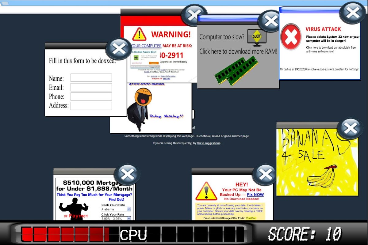 Get your adrenaline going and test your reflexes! How fast can you close those annoying pop-ups? How long can you survive? Challenge yourself and friends today!